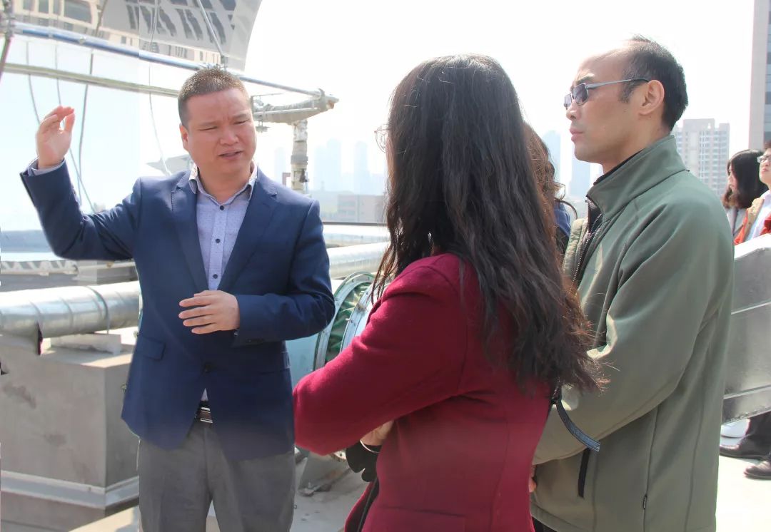 z6com·尊龙(中国)时凯集团物联创新中心副主任王立波带领参观顶层太阳能装置