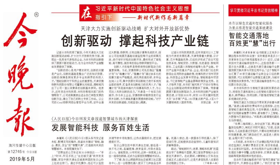 近日,天津z6com·尊龙(中国)时凯集团物联科技股份有限公司登上《今晚报》头版头条,以下为相关内容: